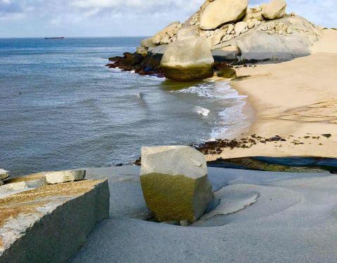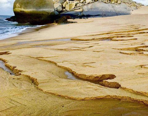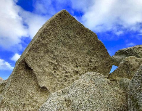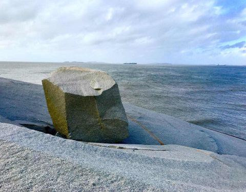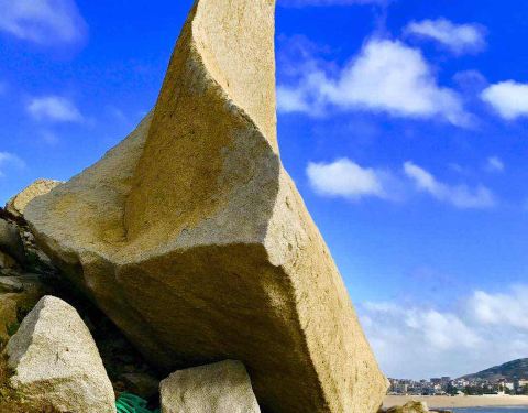 塘屿岛南端的一块大石头,颇具象征意味。爬上去可以看到周边海域的景色。可惜去的时候阴天,风浪也大。沙滩脏,砂子有些太粗了,磨脚。