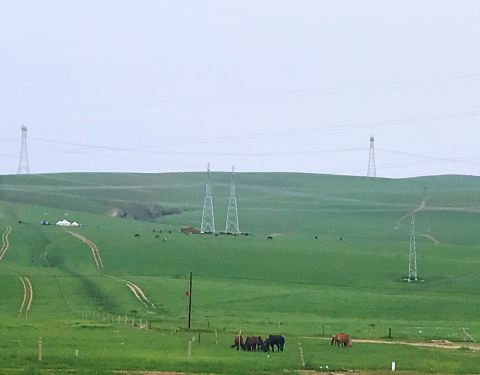 昨天走的锡丹高速,应该是白音锡勒牧场景区吧(先还以为是锡林格勒草原呢),这边的草势比那边的好,要茂盛些,牛羊和马群随处可见,有种风吹草低见牛羊的味道,可惜天有点阴,午后未见蓝天。