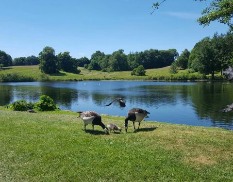 首先见到的是大块的草坪、高大的树木、人造瀑布、水塘和小溪流,以及各种花卉、野鸭和黑白天鹅等。石筑的城堡坐落在大公园中的一个小湖上,四周环水,仅有一座石桥与外界相连。因为这里常住王室女眷,室内摆设布置呈女性气息。卧室和起居室中那些梳妆台和沙发等从今天的角度来看显得并不奢华而很舒适实用,但在几世纪前就当别论了
