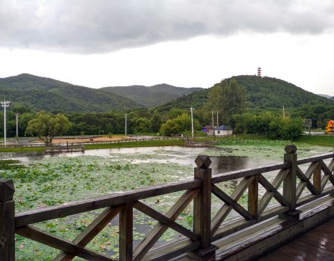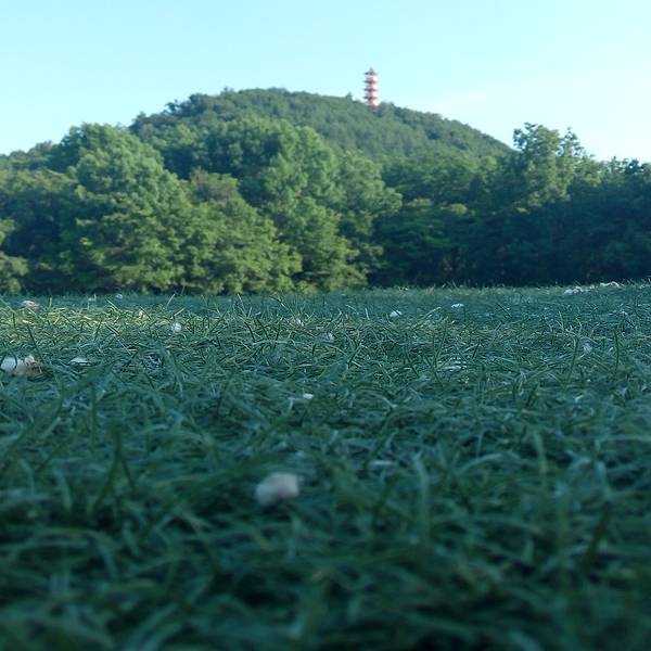 新建设的,纯原生态,空气清新,山顶有个塔,山下有个假草坪,是天然的人工阳光浴场。一个尼姑庵坐落在草坪不远处,去往5公里外的九峰禅寺会路过一个人工修建的星月湖。树林间是人工修建的木制路面,和湿地的差不多。