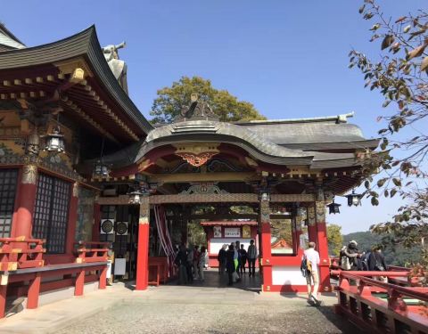 红色的鸟居是日本神社的招牌门面,只要一看到一排排鸟居,即可知道这又是一座神社。日本当地人对于神社十分虔诚,很多人前来朝拜。