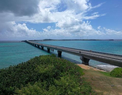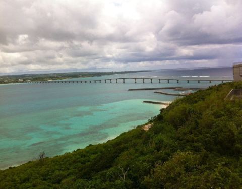 链接宫古岛和来间岛,宫古岛的一侧,仅靠著名的前滨海滩。来间岛一侧则有很漂亮的观景点。 可以俯瞰附近的海水。