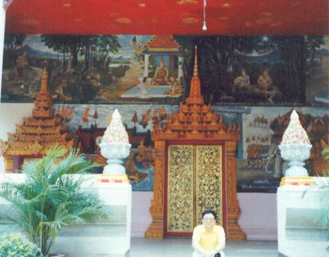 我们顺着人的潮流,也来到这条街上,原来,这里和尚在得到布施,座在地上的布施者来自世界各地,以新加坡和香港居多,还有澳门和国内南方的人,越南人也不少。人们争先恐后的与一位老和尚合影留念,我没有去合影,但是把他们合影留在了我的照相机里,考虑是布施,我也不能占便宜,从兜里拿出一小本学习汉语的书送给老僧,..... 老僧可能没有想到我会给他东西,他不敢接,我坚持要给,他只好手下,反正我在想,是布施景点,我给他东西也没有错,何况我给他的是中国名著《弟子规》,这也是一个小插曲。 我仔细观察,他们的布施也是一种形式,百姓给他们米饭,他们还给百姓一些塑料包装的食品,非常热闹。