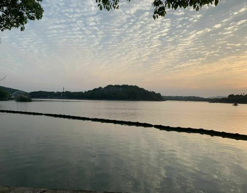 ...有塔,是一个风景优美的地方,可以观湖览水爬峰赏塔,从这头看远处的塔和峰很是美丽的,可以坐船上去