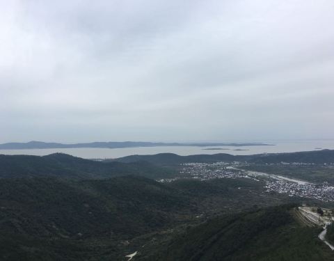 登上缥缈峰塔,可以俯瞰整个太湖的美景,还有山脚下的金庭镇
