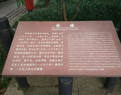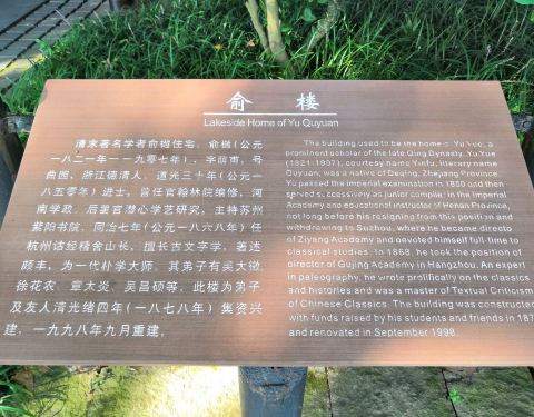 纪念馆属西湖孤山其中一个景点,纪念晚清文学家俞樾先生,他也是俞平伯的曾祖父
