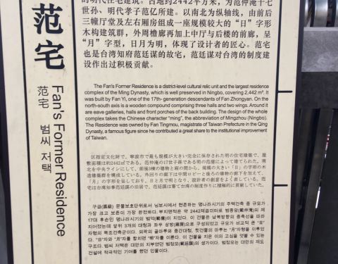 范宅位于宁波市海曙区月湖边上是范仲淹第十七代了孙范亿修建,省级文物保护单位。现在己经全部变成了宁波古玩市场,一街两行摆满文玩字画、古迹古玩(真假不知)。