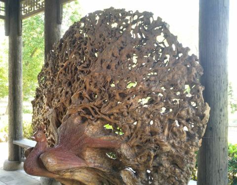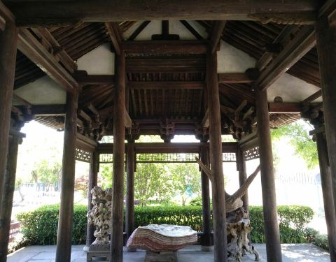 闻道园开放的区域基本上全转遍了,在里面呆了六个多小时。喜欢中国文化、古建筑、奇石的会觉得很有意思。 闻道园还没有完全建成,很多区域都在建。目前主要景点有五处:徽派古建筑区,长风书院锦鲤池,八卦荷花池,文创园,奇石馆。古建筑都是从安徽拆过来的,梁柱、门窗等构件全部编号,再按照图纸异地重建,雕梁画栋非常精致。 闻道园西北部是文创园,有徽州古建筑营造展,展示营造古建筑的工具、构件、家具等。八卦荷花池南是奇石馆,藏石一千多方。进门便是石头做的满汉全席108道菜,很逼真。除了四大赏石太湖石、灵璧石、英石、昆石外,还有恐龙蛋化石、木化石、沙漠玫瑰、雪龙号带回的南极岩石等等。 徽派古建筑区的武状元楼,建于清朝道光八年,距今约一百八十多年。柱子采用楠木,冬瓜梁采用香樟木,面积约六百多平方米。如此阔绰的用料与不惜工本,折射出当时主人名望深远,功高实归。楼内为传统布置,展示茶文化、木雕、沉香等,有一处日式枯山水庭景,上置沉香木。