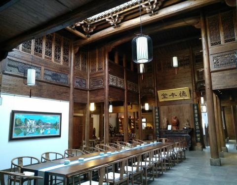 距离有点远,地方虽然,但是过于荒凉,也没什么人,门票80,一点都不值得,环境不错,都是徽派的风格,雕梁画栋的很逼真,细腻,很多名木古树,还有奇石文化馆,八卦荷花池,满池塘的锦里也成为一个亮点,园区还有餐厅,但是评价不怎么样,慎重选择。