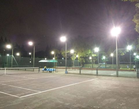 ...楼还在休整中 可能是学生还没有开学 夜晚的上体特别的安静 有散布的人群 还有球场上练习的运动员