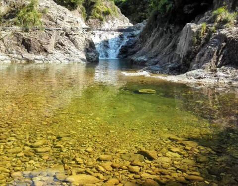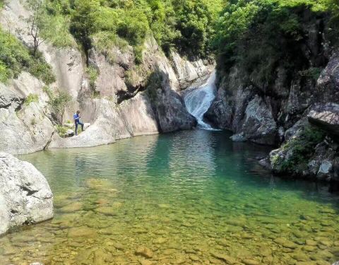 永嘉谷庄大峡谷,位于楠溪江石桅岩景区往东6.7公里处。但如果是温州市区出发,从乐清雁湖方向进山路程要短些路况也好许多。 峡谷中最高的瀑布无法直接攀岩翻越,只能从左侧上山绕过,但这里落差太大树木...