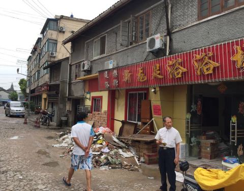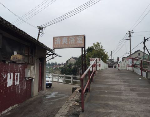 上海嘉定娄唐镇中大街,2015年9月中旬小雨天,街道是怀旧人士喜欢的台格路!中大街上几乎无人,唯独多的就是三小足浴房和三小浴室,镇上外来人口很多,是配套还是………你懂的!