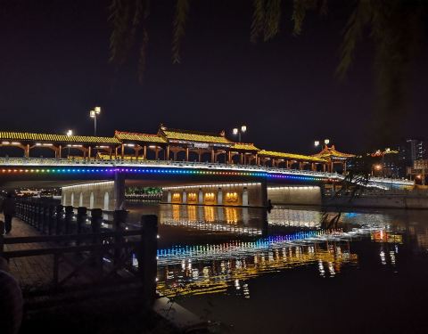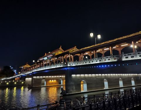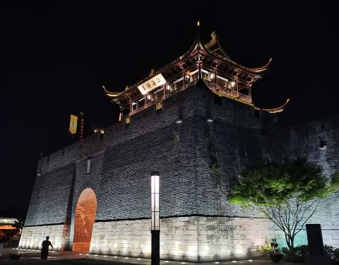 强烈推荐夜晚在苏州站乘火车的朋友来这里赏景。真的太美了。中秋夜,月初升,平门景观灯亮起,仿佛一瞬间回到了古代。平门城墙前的护城河泛着粼粼波光,和城墙上景观灯交相呼应,美不胜收。这里驻足片刻,静静聆听护城河拍打岸边的声音,抬头是一轮明月,美景直印心间。