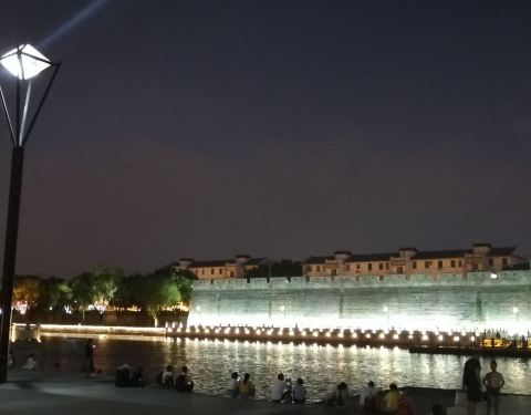 夜色迷人!真的是散步,欣赏夜景的好地方!或者暴走锻炼下身体!还可以加入是不是偶遇的各个广场舞群!城墙,灯光,水色,夜幕,都美!