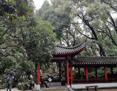 不大的一个开放式公园,没有大门南面和鼓楼步行街连接在一起,东门有一个非常大的广场有儿童乐园,还有张苍水故居,公园景色宜人花木茂盛,许多当地的老人在这里下棋唱歌,好不热闹~~