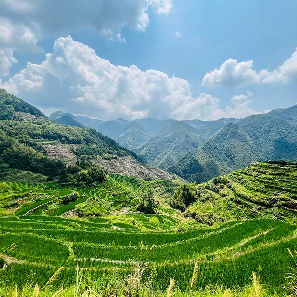 从大漈乡驱车7公路,沿盘山公路而进,就到了深藏在群山中的古村落。在村头的停车场,有村史和民俗的介绍栏,其中吸引人眼球的除了村史村训,秀丽风景,还有近年从村子里走出去的青年,他们通过刻苦读书,考取了外面的高校,在城市里就职,成为村里人的骄傲,是荣光,也有遗憾。 村民们依然保留着数十年来耕作的传统生活方式,勤劳淳朴,恍如与世隔绝的密境。村公所和公厕是村里最现代的建筑,应该讲。公厕管理得异常整洁,让人感叹不已。 被一位大姐关注到,先是介绍景点,随后推销她家的笋干,反复强调她人很好的。这是有不多的,有商业头脑的吧。 村里的梯田和环保的群山是上佳的摄影点,需要再往山顶上走一段,角度会更合适。