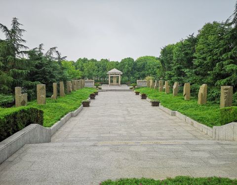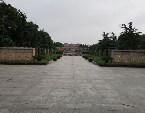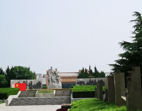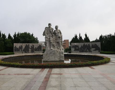 ...面有沙家浜的四个人物形象,前后各两个,广场通道有18根造型各异的石柱,是沙家浜18位伤员的象征