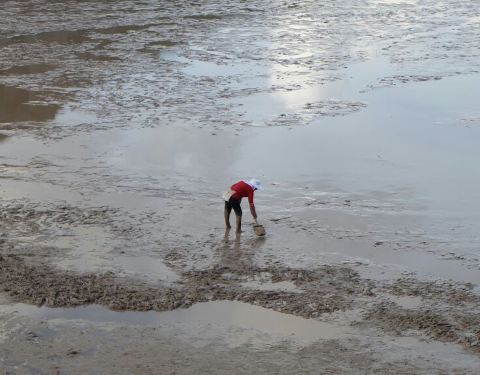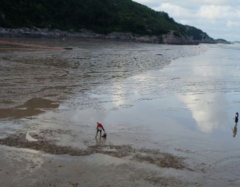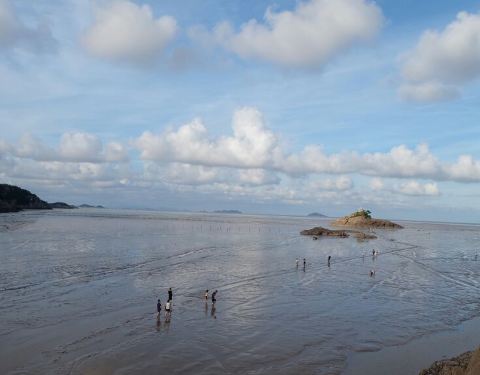 海滨滩涂,抓小螃蟹,适合烧烤,景色不错,值得推荐!