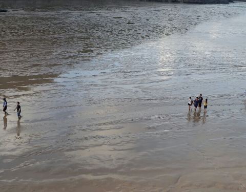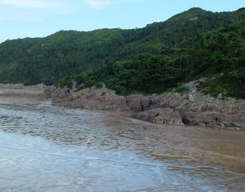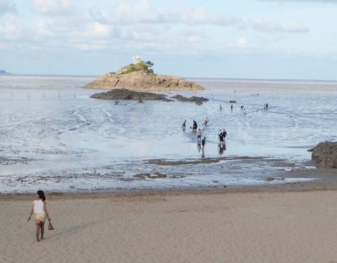 很小的海滨,沙很少都是泥,海水是黄的,不值得去。
