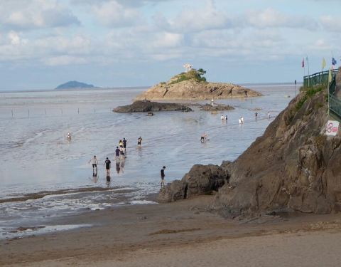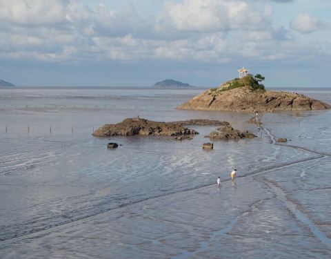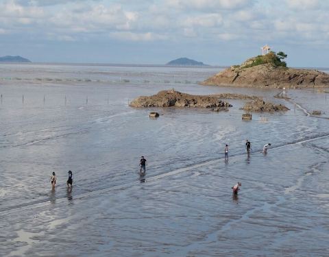 这个景点其实挺值得一游的,游客不多,不像网上看到的评论这么糟,是台州市唯一的海滨浴场,有海蚀地貌和火山熔岩、流纹岩等独特的地质景观,滩涂虽说是泥沙质地,却形成了一道独特的海滨自然风光,比象山的海要更开阔,视线好。沿着栈道走移步换景,沙滩上还有沙滩摩托游乐项目,边上还有水上乐园。