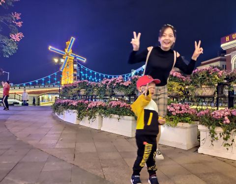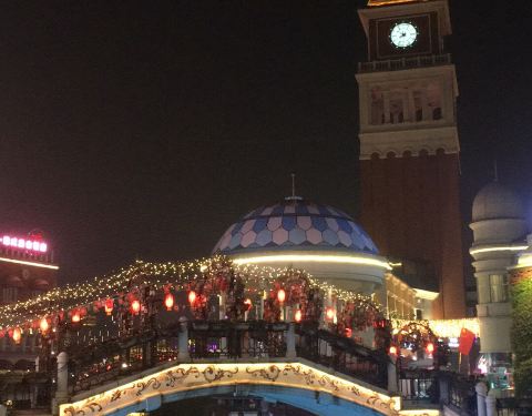我是白天也在这里游玩,晚上也来这里逛吃。协调街区打造的非常好。总之,非常不错