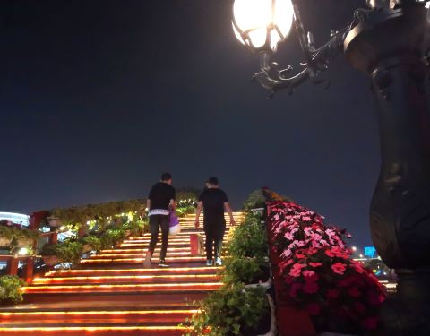 自驾去青岛 在盐城过夜 晚上去欧风街逛逛 有点惊艳的感觉 不亚于大城市 灯光非常漂亮 到处是鲜花 音乐喷泉挺壮观的 还有儿童乐园和店铺 周围还有很多大商场 是个好去处