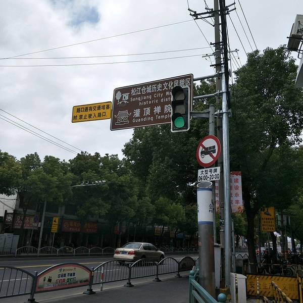 话说等车是件痛苦的事,况且还是这么冷的天气窗外满是绿色看了地图,发现南松线也可以到达,好过在这么个偏僻的地方等待松卫线,再次冷风中…松浦大桥没想到松卫线居然也可以路过车墩影视城换乘松江2路松江仓城,也可以称为上海松江仓城,或简称为仓城,是一个历史地理名称。松江仓城在今天的上海市松江区中山西路一带,现在,这一区域规划为仓城历史文化风貌区远远的牌子我们常用一个成语叫作“醍醐灌顶” 在仓城就有一座灌顶禅院 它坐落于老城大仓桥西侧,市河南岸 又称“水次仓关帝庙”,始建于明朝天启二年(1622年) 距今已有395年的历史走过一座桥,瞬间露出了老街的样貌松江仓城,为松江和仓城两个词组成的复合词,是一个历史地理名称。 松江即古松江府,地域在今上海市。 仓城为地域名,来源于当地是明清两代松江府的最大漕粮仓储地和漕运始发地。古代的松江仓城在今天的上海市松江区中山西路一带,这里仍有使用仓城名称的习惯,例如,一些居民小区称为“仓城一村”、“仓城六村”。这座古城位于松江老城区城西,沿市河南岸而建,东起与市河交汇的小河,西至玉树路。是明清两代松江府的最大漕粮仓储地和漕运始发地。明代松江大米进贡京城,漕运船队就从这里出发,故称仓城大致的老街风貌没有继续往前,就先去桥边看看满是沧桑感老街名为仓城地区,在松江城区的西面,被批为历史风貌保护区,大仓桥是标志性的景观,所谓仓城就是最大的漕粮仓储所在地,据记载,明清时大仓桥南筑有仓城,有城墙及四门、敌楼、瓮城等,规模甚大。可以说,正是仓城的兴筑,才使松江城的西部获得了快速发展,并最终影响了松江古代城市发展的格局。松江是我国少有的有两座城的城镇,它一个位于谷阳路以东的老城,另一个就是位于大仓桥之南的“仓城”。秀南街就是从这里开始,到大仓桥脚下结束。这条长一公里左右的秀南街是现在松江保存较好的老街,是松江古建筑的一个见证,也是老松江人回忆往事的地方。小街最宽处也只不过三四米,最窄处只有一米多一点,两边都是民居,汽车是不能通过的。 走进这条老街,绝大多数都是老房子,很有些韵味。老街旁边是一条十米宽左右的市河,河水缓缓流淌。隔河也有同样的民居,河岸边挂着晒衣架,旁边几棵长满绿叶的柳树,婆娑的柳枝静静地垂在水面上。屋顶是小灰瓦,排列整齐,是江南一式的落檐房子,屋脊也用小瓦整齐地竖排着,两边翘起好看的形状。傍河的民居都有伸向河里的石阶,让人不由得想象这里曾经有一条船,房子的主人常常乘船出行,或做生意,或跑亲戚,或游玩。这么看,倒也有种不一样的美下了桥,右边就是禅院了灌顶禅院主殿供奉的是三国蜀汉大将关羽 他刚正不阿、忠肝义胆 是中华文化“忠义”之德的突出代表 为槽工及工商人士所信仰 同时院内也供奉普通百姓信仰的观音等神像在大仓桥旁还有一座孟姜亭 “孟姜女哭长城”的故事大家都知道吧 据说在孟姜女北行的过程中 行至大仓桥,天色已晚 便歇于河畔一青石之上,蚊虫不扰其睡梦游思 自此,该石成当地百姓纳凉之胜地 取名“孟姜女坐石” 后来就形成了这座“孟姜亭”松江老城区中最著名的莫过于大仓桥了 它是明朝所建,原名“永丰桥”、“西仓桥” 后因桥的南端储存有不少的粮食 故又俗称“大仓桥” 是上海地区现存最大的古石桥之一这会就来到了老街深处窄窄的巷子大多也是废墟走到这,也到头了,隔壁是所中学