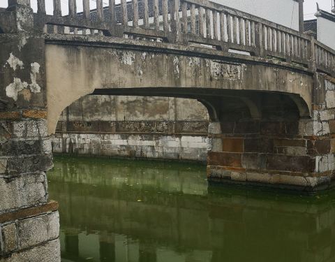 到松江一直在寻找松江古镇的标志性街区,以为是修缮一新、熙熙攘攘的华亭老街。纯粹是因坐公交偶遇,才发现仓城老街才是松江古镇的符号。最为精华的是从大仓桥至丰年人寿桥之间沿河两岸,从大仓桥端沿着窄窄的秀南街漫步,许多建筑墙上都有个大大的拆字,住户已搬走,即静谧,又有不加修饰的原生态美,或许明年就不再是现在的样子,像其他古城街区一样换了新颜,但也丢失了内涵。走过丰年人寿桥,沿着河边新修整的步道,观赏对岸的建筑,品味着其中的美及年代的味道!