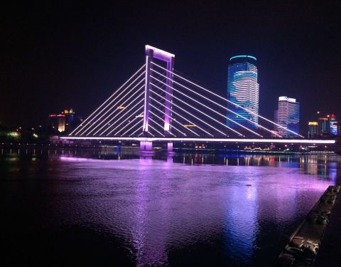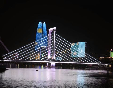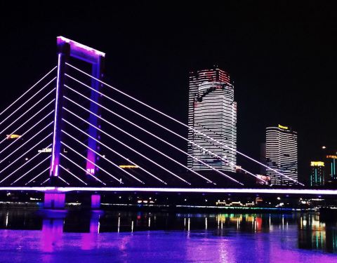 宁波甬江大桥横跨甬江,连接老外滩和江东地区,夜晚甬江两岸,大桥本身灯光旖旎秀丽,风景秀丽宁波甬江大桥横跨甬江,连接老外滩和江东地区,夜晚甬江两岸,大桥本身灯光旖旎秀丽,风景秀丽。大桥两岸有老外滩酒吧一条街,庆安会馆等,值得一看。