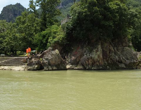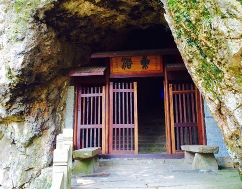 东西洞景区在河对岸,过去要么是竹排,要么缆车,单程25元往返40元的缆车以及单程15元的竹排是本地私人的,其实,景区也有竹排,单程只要五元,上船点在私人上船点下游20米处,五元竹排入口有意被遮挡掉了,当地人的竹排没有救生衣,五元的竹排是有的,很好辨认。 别听当地人忽悠,上山很累要坐缆车,景区山不高,基本都是平路,最佳线路是,坐五元竹排过江进西洞景区走一条环线,下来后过桥,游东洞景区,走一个环线,到达小溪边,从双龙桥右边沿小河走鹅卵石小路出景区。坐五元竹排过河。全程没有多少强度同时,也能省一些钱。 景区的风景不错,但因为地处小县城,管理很混乱,但总的来说,对得起40元的门票。