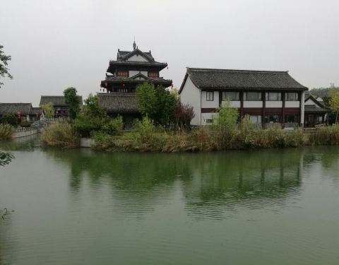 水釜城历史上就有记载,现在看到的这处水釜城景区是根据历史上的水釜城进行的复原,整个景区并不是很大,以古典的江南园林为特色,其实在这里是看不到洪泽湖的。这景区内是一些小桥流水,布局紧凑。景区内水域面积比较多,占了整个景区的三分之二,共有四条水系,形成了内外循环、大小循环四条完整的循环系统。水釜城的建筑是按照明清的样式复建的,颜色很素淡,四条水系在黑瓦白墙的仿古建筑群内缓缓流淌,整个景区充满生机,只是景区游人不多,可能是新建的景区,著名度不高吧!