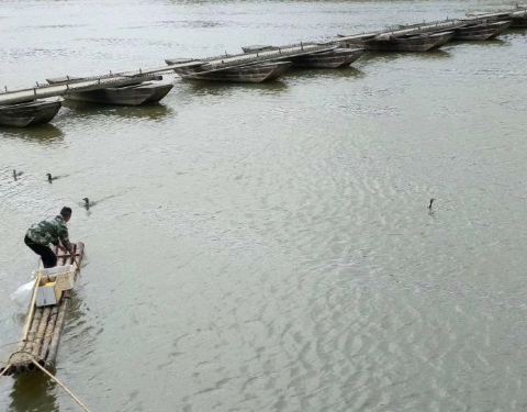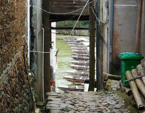九石渡,仅这三个带着古意的文字,就足以令人对逝去的古朴之风浮想联翩。而当你真的站在它的眼前,这满目的纯朴与沧桑,更足以填满你渴望返璞归真的心愿。 九石渡位于浦城县的观前村,这里溪水深幽,溪面平阔,曾经是浦城县最重要的水运码头。如今却是百物凋零,人去楼空。作为远道而来的旅者行走在浮桥上,身边的河水悄无声息的伴着我的脚步,唯有船上木板吱呀的声音在晴朗的上空飘荡。暖暖的阳光覆盖着清洌洌的河水,闪着明晃晃的光芒,明亮而又刺目。清新的空气如水一般穿透了我思维的空间,伴着我游走到对岸。 抬望眼,岸边是一级级青石板的台阶,青石板间隙里生长着的或稀或淡的青苔,见证着渡口的悠悠古朴,也见证着我们寻幽探秘的行止。