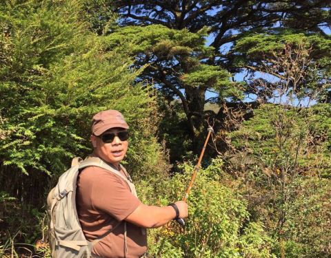 天空是如此的蔚蓝纯粹,甚至看不到一丝云彩,秋天的山不复是一味的绿色了,开始变得五彩斑斓,红的、...酃峰,站在湖南之巅 10月17日,我怀着激动的心情,和20多个山友们一起坐车来到了酃峰脚下梨树洲叫做上洲的小村庄,这是个人烟稀少、安静的小村庄,暮色中,我们搭好帐篷安顿好之后,夜色来临了,夜空中悬挂着一轮...酃峰,站在湖南之巅 10月17日,我怀着激动的心情,和20多个山友们一起坐车来到了酃峰脚下梨树洲叫做上洲的小村庄,这是个人烟稀少、安静的小村庄,暮色中,我们搭好帐篷安顿好之后,夜色来临了,夜空中悬挂着一轮弯弯的上弦月,满天的星星也都密密麻麻地探出头来,这山区夜晚的天空与城市的夜空感觉就是不同,似乎更纯净更静谧当然也更美丽!我们的到来似乎打破了这里的宁静,篝火烧起来,歌儿唱起来,舞儿跳起来,特别是我们还邀请来自长沙的户外团队加入我们的篝火晚会,两支队伍一起联欢,轮流对歌,又唱又跳,掀起一轮又一轮的高潮,虽然才相识,却似乎已是久违的朋友,每个人不管你是什么职业什么来历,来到了户外我们就只有一个身份,那就是山友!第二天清早,我们在略带寒意中醒来,发现帐篷外结了一层白白的霜,难怪我们还在穿短袖的时候这里的人已经穿上羽绒服了,山里的气温在夜晚已经达到零度了。然而太阳升起来了,温度也渐渐升上来了,迎着朝阳,我们向着湖南第一峰出发了!天空是如此的蔚蓝纯粹,甚至看不到一丝云彩,秋天的山不复是一味的绿色了,开始变得五彩斑斓,红的、黄的各种艳丽的色彩点缀其间,已经是一片秋色烂漫了!走在透过树叶洒满阳光的山路上,呼吸着山里清冽新鲜的空气,听着随身携带着的音箱里的歌曲,尽管已是气喘吁吁,但心情却是如这天气一般灿烂无比!走过竹林,走过芦海,走过小溪,走过密林,走过陡坡,走过山涧,走过草甸……我们在溪流的石滩边小憩,我们在插着国旗的羊圈里访问,我们在高山草甸里嬉戏、打滚、跳跃,我们在如迷宫般的竹林里穿越,我们将枯萎的蒲公英吹得四处飘散……经过四五个小时的跋涉,我们终于到达了酃峰顶峰,把这湖南最高峰踩到了脚下。酃峰,又叫神农峰,海拔2115.2米,而且对面的南风面海拔2120.4米,是江西的最高峰,只需半个小时的路程,一脚跨两省,我们也成功到达。站在山顶,四周眺望,群山连绵,云海茫茫,天尽头宛如海市蜃楼,恍惚间,那里不是山的尽头,而是海的彼端,我们似乎醉在这无边的风景里!酃峰,我来了!下山的路似乎比上山的路更漫长,我们这次是穿越,所以不用走回头路,但下山的路程比上山的路程似乎更远,在夜色中,我们的车子向着家的方向奔驰着,我们所有的人似乎还在回味着这一天站在湖南之巅的感受,尽管在这山里奔波了近十个小时,累得不行,但这一切似乎都是值得的,我们每个人心里都有一种说不出的自豪感和满足感,再见了,酃峰! 展开