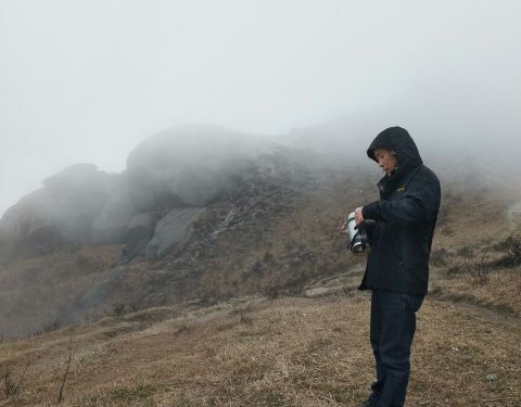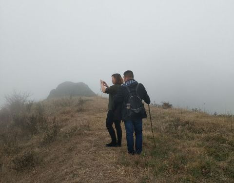 没有开发的大山,找了当地的农民带路,才上到山顶,雾太大了,啥也看不清。全程走了10多公里,虐!