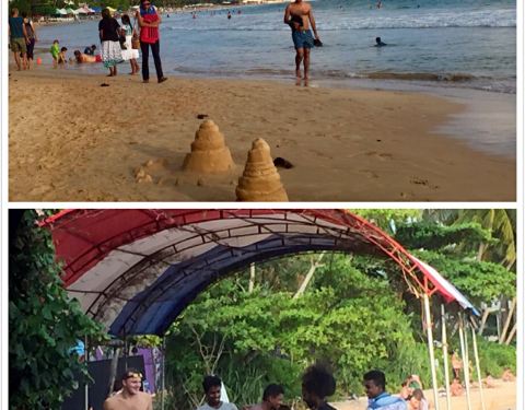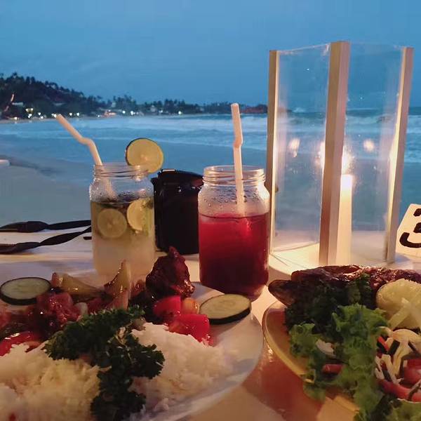 米瑞莎的沙滩,号称斯里兰卡最美的沙滩之一声名远播,来到这里没有我们失望。主沙滩有很多餐厅,所以人自然是多的,晚上更是热闹而喧嚣,不远处一百多米,是黑沙滩,人很少,一边白色发亮,一边黑的发光,相隔不到百米。裹着脚趾松松软软的都是极柔软的棉细沙,坐在沙滩上什么都不干,舒服……