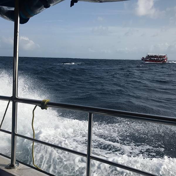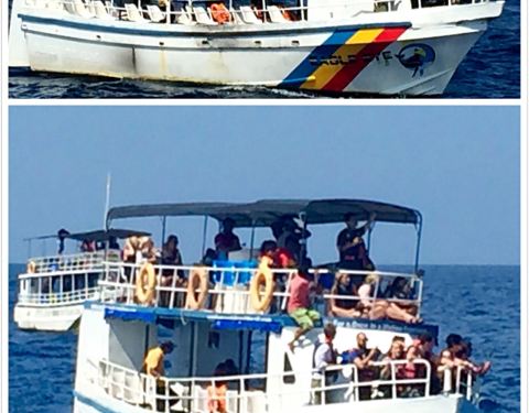 但是非常容易晕船,又赶上出海的时候天气不好,整个船上的都在晕船吐得不行。海豚基本上没有问题