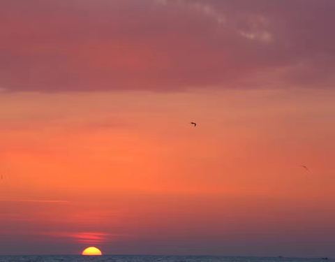 旅行到一个陌生的国家陌生的地域,不管呆的时间多久,我们永远只在表面划过,进入不了它真相。捧着相机,捕捉稍纵即逝的日落瞬间这些片段仿佛凝固了,真实了起来。米瑞莎沙滩是斯里兰卡出了名的日落观赏地,我住的酒店离沙滩一百米的样子,没有往喧闹的人群中去拥挤,站在露台上,我拍下了这一幕,日落和红霞都是上天赐予的小确幸,很高兴在这里遇见醉美的你。