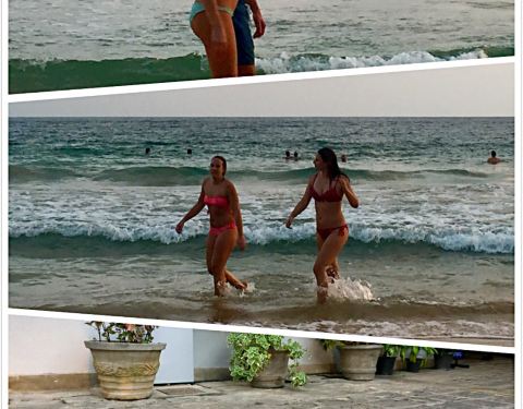 美瑞莎的海很干净,沙滩很细,是个不错的度假胜地。二十分钟后,我们开始返程。我们都和难受,没有那个心情