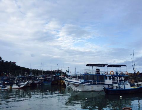 直到坐上船到了海上才明白这个决定是有多么的错误。早上房东太太叫醒我们,给我们打包了早餐让我们去船上吃,民宿旁边就能看到停泊了很多船,所以走个五分钟就到了。上船之前先签订协议,填上自己的信息。到了船上服务员贴心的倒上红茶什么的,我也吃了几口香蕉和早餐,味道很一般就没有再吃了。船开之后,服务员发晕船药,我拿了一颗立马吃了。虽然我不晕船但以防万一。开了大概二十分钟,我的朋友已经不行了,非常的难受,我倒还好,我们换座位到了船中间,希望能减轻晕船的痛苦。没过一会,我朋友开始吐了,他一吐我看到也很恶心,开始不舒服了。我望着海,非常恐惧,海水的颜色是黑色的,一层层的大浪过来让人担惊受怕,每一层浪都比我们的船高,一层浪过后,我已经看不到天空了,都是那黑色的巨浪,想要一巴掌将我们的船拍碎。船上的大多数人都开始吐,早知道还不如不吃早餐,现在让自己很恶心。差不多一个多小时后,船停了。四周全是望不到尽头的深黑色的海,我第一次如此惧怕大海,觉得自己可能会葬身在这片 印度 洋中。