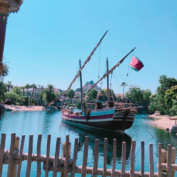 天气雨转多云了,还很幸运9点左右到的,赶上了加勒比海盗☠️的现场秀,官方是7/9开始,而我们7/8到的,一进园区,就看见海洋前面排排坐了