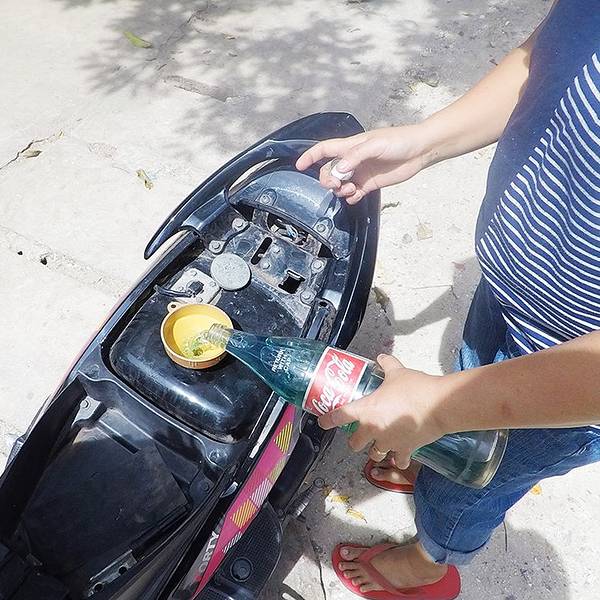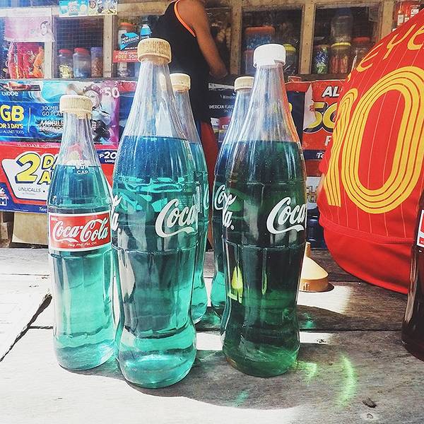 机车的油量已过半,在一个小卖部停下,发现这种装着红色、绿色液体的可乐玻璃瓶,原来就是机车的食粮。 展开