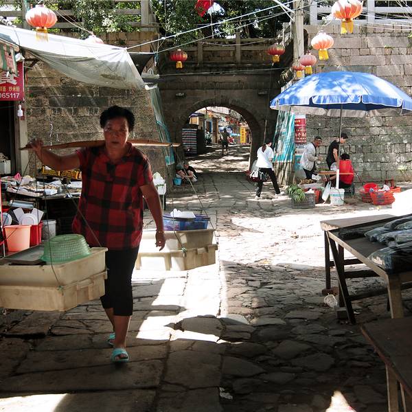 城外有一条宽宽的护城河,与城堡构成一个整体。城上窝铺、炮位等设备齐全,与外海的烽火门、南日山互为表里,结为犄角、斥堠相望、壁垒森严,形成坚固的防御体系,阻遏了海上盗寇的觊觎骚扰、人称 "海涯屏藩" 。如今城堡内遗留大多都是古民居,原住民,古城百年甚至几百年老屋商铺鳞次栉比,热闹之处不亚小县之城,也是游玩的好去处。古城门这个人民会场不算古,但也有历史意义。古榕蔽荫,崇墉屹立。城内街道以条石拼排,长1200余米,万年石,千岁路,百岁人。活在当下 展开