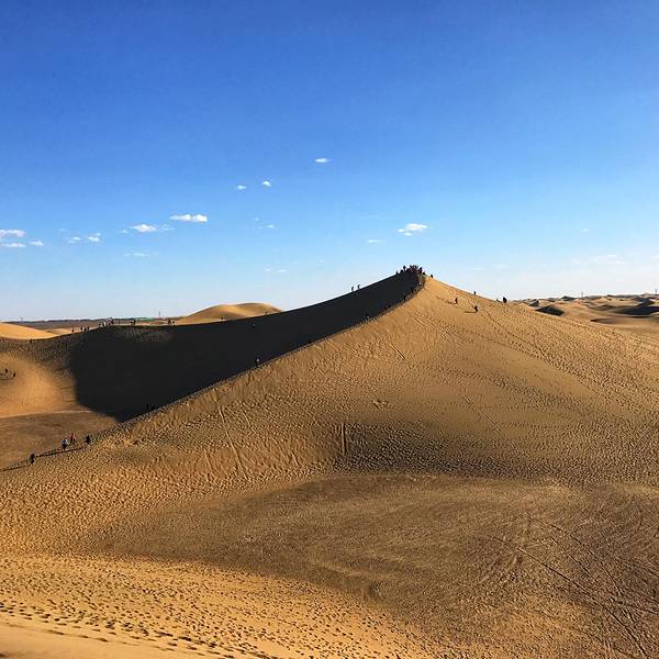 不过一直看黄叶,就算大脑还很兴奋,视神经也会疲劳的,可能兴奋响应阈值会很快升高,立马就审美疲劳了七道桥以东就是沙漠的边缘巴丹吉林沙漠,所以八道桥完全是沙漠风情,很有特点,千万不要错过。 快到八道桥的时候,隔着河能看到远处的沙丘,路边没有树了。不过一直看黄叶,就算大脑还很兴奋,视神经也会疲劳的,...七道桥以东就是沙漠的边缘巴丹吉林沙漠,所以八道桥完全是沙漠风情,很有特点,千万不要错过。 快到八道桥的时候,隔着河能看到远处的沙丘,路边没有树了。不过一直看黄叶,就算大脑还很兴奋,视神经也会疲劳的,可能兴奋响应阈值会很快升高,立马就审美疲劳了。所以来点不一样风情的调剂下也好。 到了八道桥,一下车就看到了“沙雕”,真的是“沙雕”,好多“沙雕”! 来都来了,沙漠活动最好玩的是什么? 第一骑骆驼,第二滑沙,越野车要自己开可以排第三。土豪请全包。 于是我和同团大佬一行组了个驼队。别人都骑棕毛骆驼,我弄了只白骆驼,而且这只还很温顺! 驼队只是在沙丘锋线上走一圈,这样走是最省力的。绕了三个峰,一圈下来有10到15分钟。 中途你可以要求牵缰绳的工作人员帮你拍照,他们会停下来满足你的要求。由于拍照经验丰富,他们的构图还不错。 温顺的骆驼骑着还是很舒服的,站起的时候后脚先起,前脚再跟着起,跪下的时候相反。所以在起飞和降落的时候人要后仰,再绷紧脚蹬,可以把人牢牢的固定在鞍上。 另个一个比较刺激的项目就是坐越野车冲沙了,不过只能坐副驾 沙漠风情园其实也就这么大,喜欢沙漠的盆友可以多待一会儿。不过额济纳的重头戏一直是胡杨林,别让沙漠喧宾夺主。 P.S. 也有很多人希望能拍到沙丘落日的景象,事实上就算是大中午,在沙漠的背坡也是很冷的,越迟阴影越大,影子也拉的越长。下午4点多天气就很糟糕了,还可能起沙城暴。 另外骑着骆驼在锋线上行走时也会时不时遇到沙暴的骚扰,请做好防护。 展开