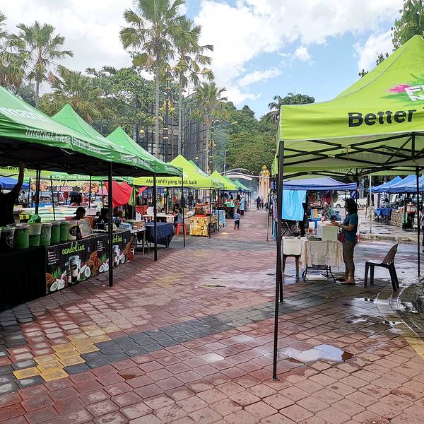 加雅街是亚庇市区内一条很有名的街道,就在中央车站的旁边,入口是一座很有中国风的牌楼,“国泰民安”、“政通人和”两幅匾额寄托了当地华人对于生活的期许。 街道两旁有许多传统中国餐馆和其它杂商店,可以很好地感受到这里的风土人情,因此吸引了许多游客到亚庇必来这里走走逛逛,在每个周日那一天还会有周日街头集市,很是热闹。 加雅街可以说是美食一条街,众源餐厅、冯业、怡丰宵夜档、金记甜品、佑记炖品店、五星海南鸡饭等等,每天都可以换着吃,平日里白天比较安静,晚上这些店铺开了之后会很热闹。 还有就是每到周日从一早上就开始热闹起来了,周日市场早早的就开摊了,占据了一整条街,市场上卖的东西还真是挺齐全的,生活用品、土特产、旅游纪念品、服装鞋帽、蔬菜水果、小吃等等,还有卖花鸟和宠物的,非常接地气的市场,可以在这里淘到不少便宜的旅游纪念品。