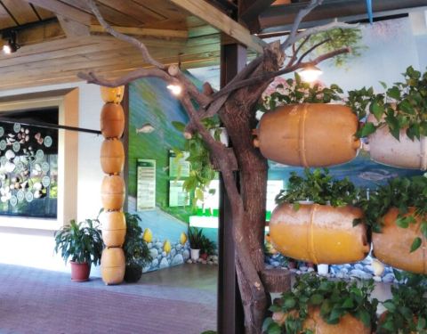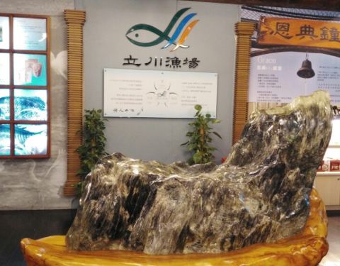 渔场天然清澈涌泉养殖黄金蚬、金鐏、香鱼和水鳗等水产,有一个小型介绍黄金蚬科普的展示厅,介绍台湾黄金蚬行成的自然地理环境,好山好水,纯净的水质,结合科技环保的养殖技术,规划流水式的活水养殖,才能生产出高质量无泥味的渔产品,“黄金蚬”更是闻名遐迩。 后面有一个摸蚬的场地,可以下去摸蚬,费用100台币,可以带走一斤辛苦摸来的蚬,大人和孩子都乐在其中,是亲子同游的好地方。摸出来的蚬还可以在餐厅加工,马上成为盘中餐,既然小朋友体验了摸蚬的乐趣,又让他们知道劳作的辛苦。在自然野趣的生态区,可以看到一条条悠闲自在的黑鰡和锦鱼,可以喂鱼食,那里的鱼好大,张开大嘴,能吃下不少鱼食。 黄金蚬深加工成为各种各样养生茶,养生汤包。天然蚬精,一瓶75台币,天然蚬淀,一盒100粒,1880元台币,立川儿童蜊仔健素,一瓶(60颗),300台币,立川蚬之素,一瓶(180公克),300台币,价格不高。 餐厅里的美食也不能错过,炒蜊仔,清蒸贵妃鱼,鲜美盐烤台湾鲷,涌泉香鱼,等等,光听名字都让人浮想联翩了。