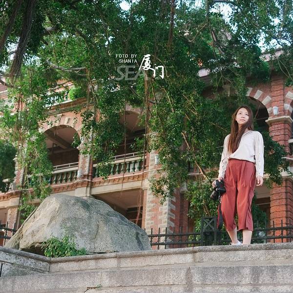 继续去嘉庚公园的路上路过高中部一个大台阶,这边也很适合拍照,刚好在课间,一群高中生在外头坐在台阶上玩着手机。想起来我们高一那会iphone才刚出3GS,而且学校也严格得不允许携带任何数码设备,现在的小孩真幸...