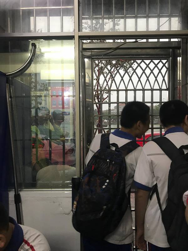 因为遇到突然的暴雨,只能慌不择路跑到最近的初中,和中学生们一起挤在传达室里,他们等家长,我们等...