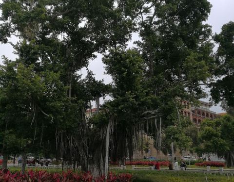 ...响后我们走上台阶,没想到他们教室门口居然还有一个小炮台,背后是一个巨大的榕树,果然随处是风景啊