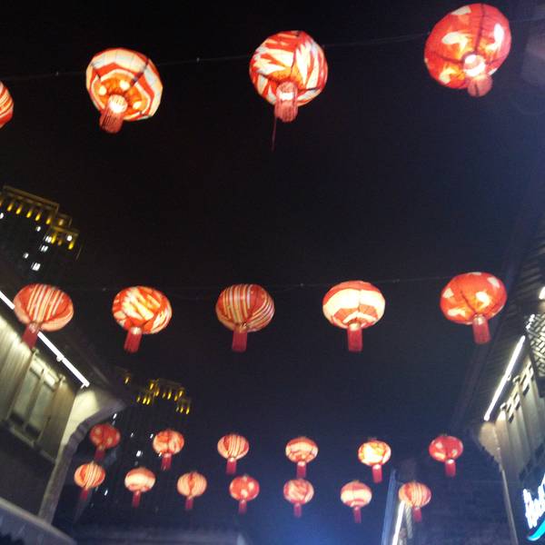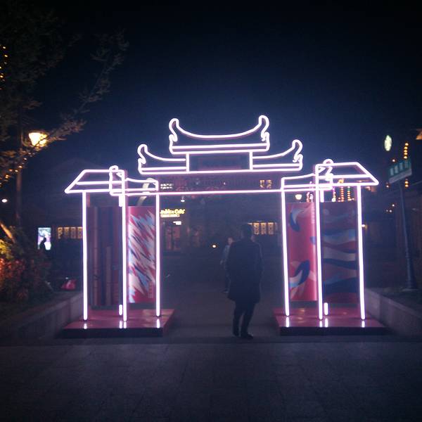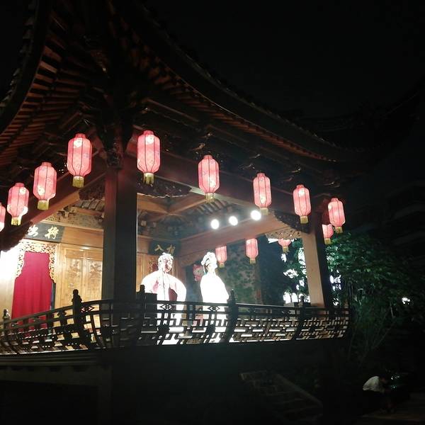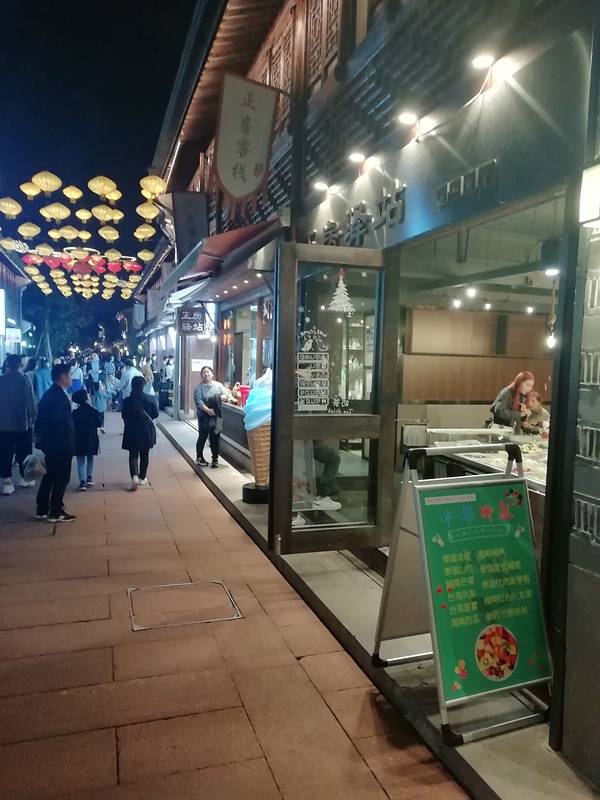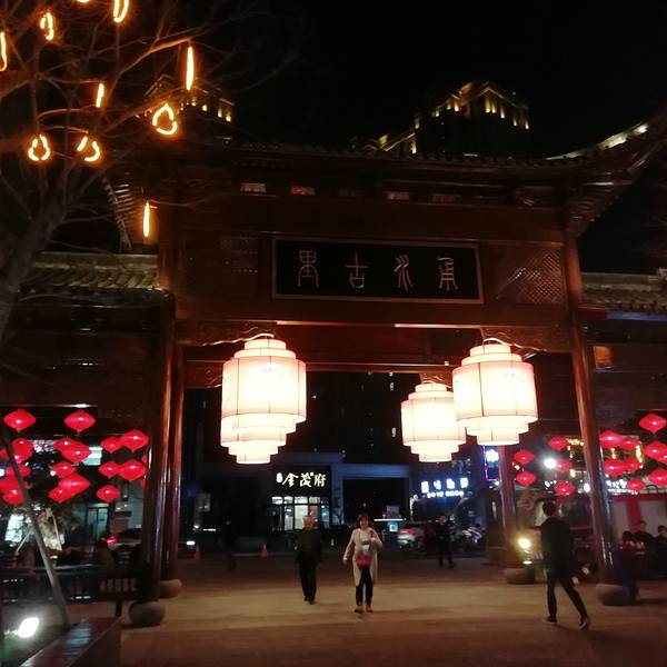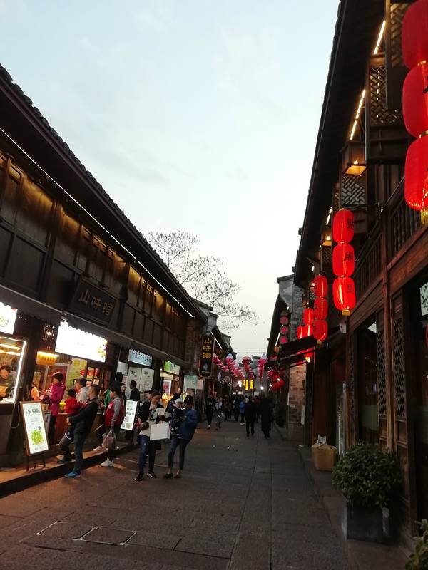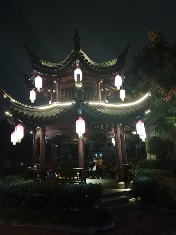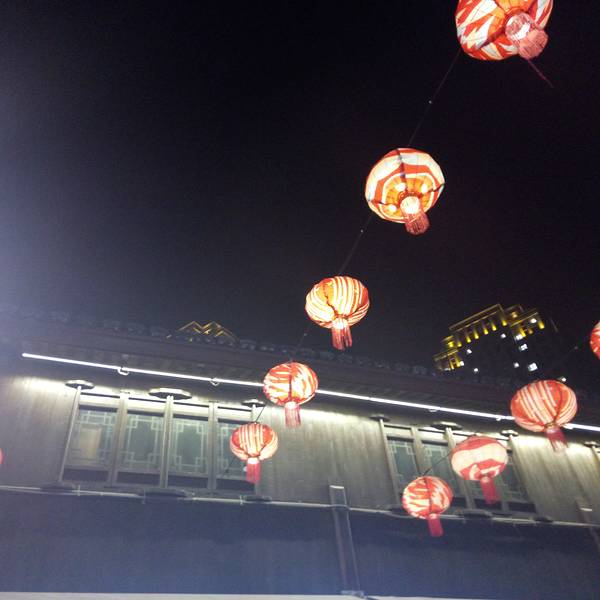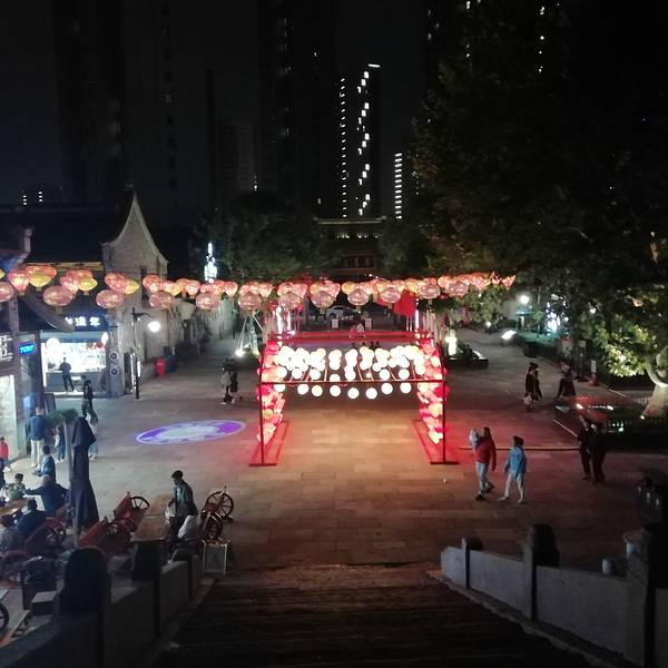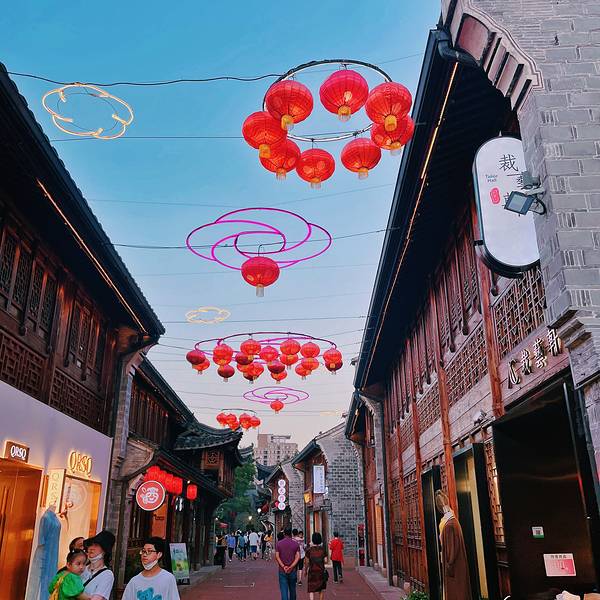 晚上灯笼亮起,配合周边布局,颇有古风,走在路上颇有穿越之感。