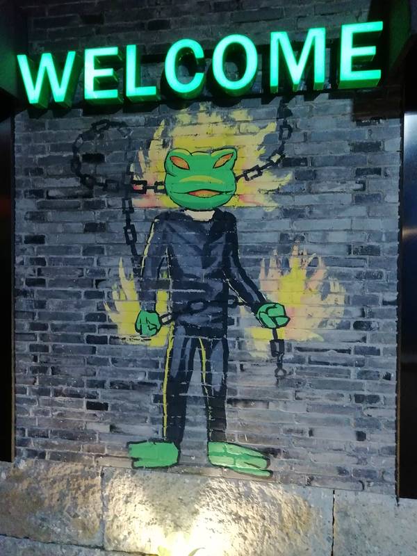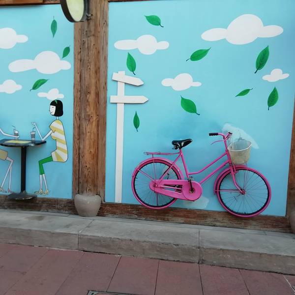 此外,不管一期,还是二期主干道上都有不少特色墙面。颇有几分趣味。
